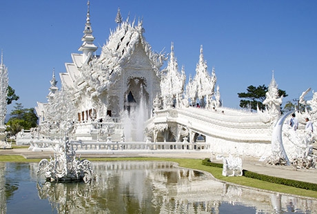 Perhaps the most unique temple in the Kingdom of Thailand, the White Temple was born from the devotion of National Artist Chalermchai Kositpipat. A deeply de-vout Buddhist famed primarily for his religiously themed paintings, Chalerm-chai began work on the White Temple in 1997.